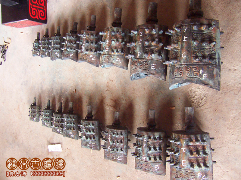 簡介:16件晉侯穌青銅編鐘,是隨州古編鐘公司根據晉侯穌編鐘設計制作,編鐘外形按照晉侯穌編鐘設計制作,編鐘為青銅鑄造,采用國際標準樂音音高A=440Hz調音,可以旋宮轉調演奏古今中外樂曲。