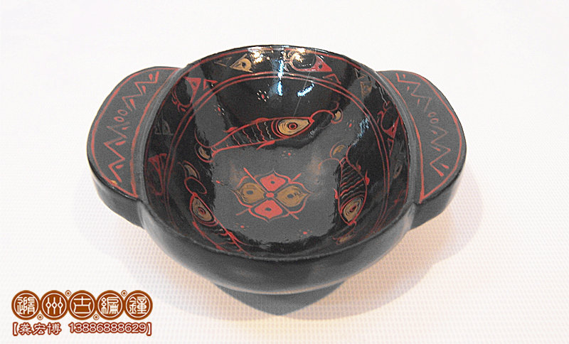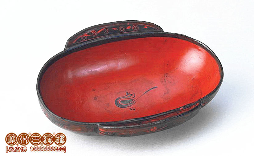 彩繪鳥云紋耳杯做得輕便靈巧,黑紅兩色對比明顯,云紋流動(dòng),龍飛鳳舞其中。古人飲宴,必伴以音樂鼓瑟,方能賓主盡興。古人禮儀,以雙手執(zhí)耳杯飲酒,不似今人單手執(zhí)杯。