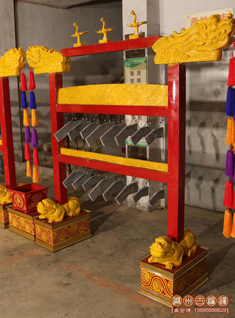 材質(zhì):編磬:靈璧響石;磬架“木結(jié)構(gòu)”