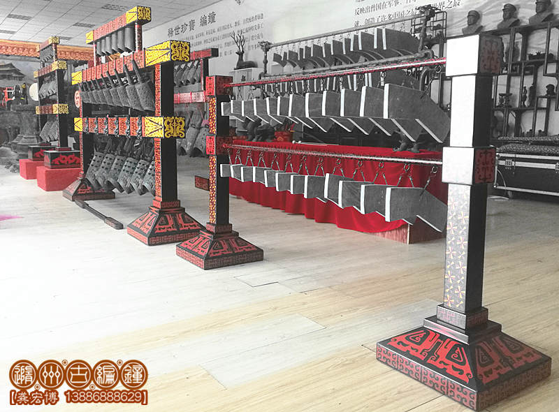 公司還設(shè)計有32件曾侯乙編磬、12件古音編磬、特磬等多種規(guī)格的編磬,方便樂團選購。