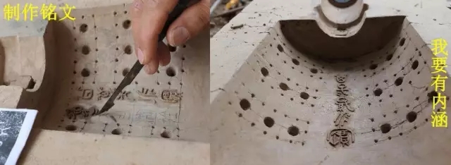 銘文制作好后,放置陰干數(shù)日,待表面有了一定的強(qiáng)度后即可進(jìn)行下一步操作。